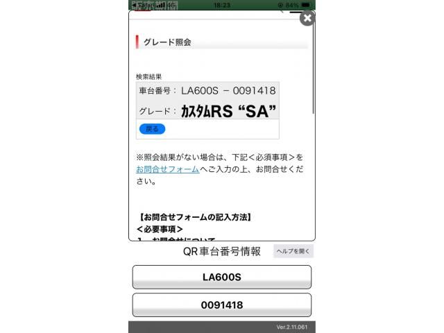| CHASSIS NO. | LA600S-0091418 |