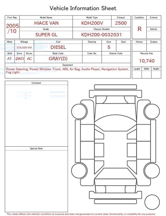 | CHASSIS NO. | KDH200-0032031 |