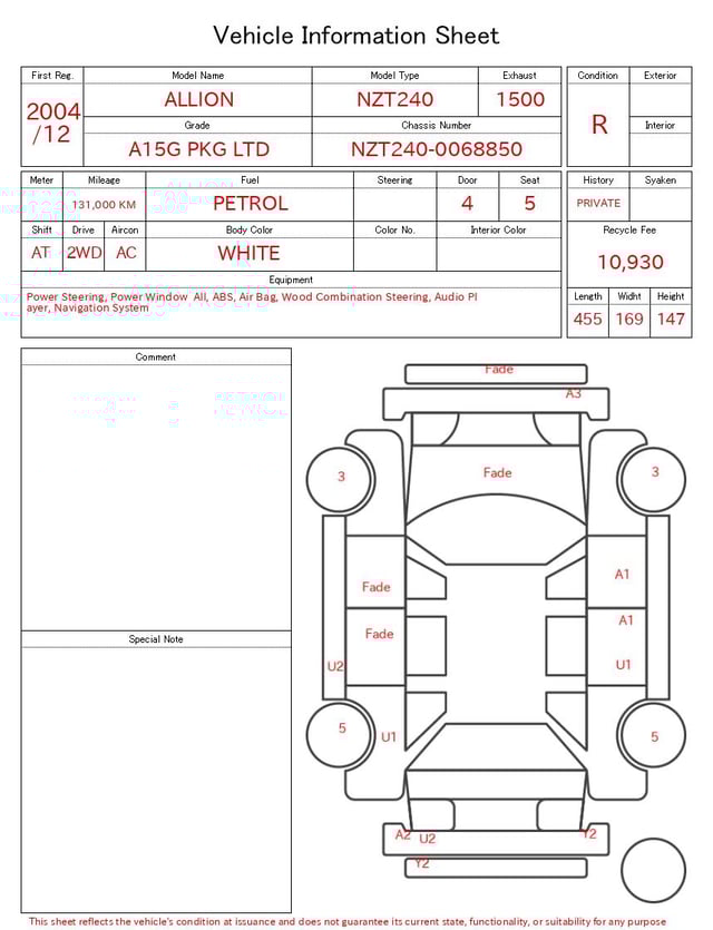 | CHASSIS NO. | NZT240-0068850 |