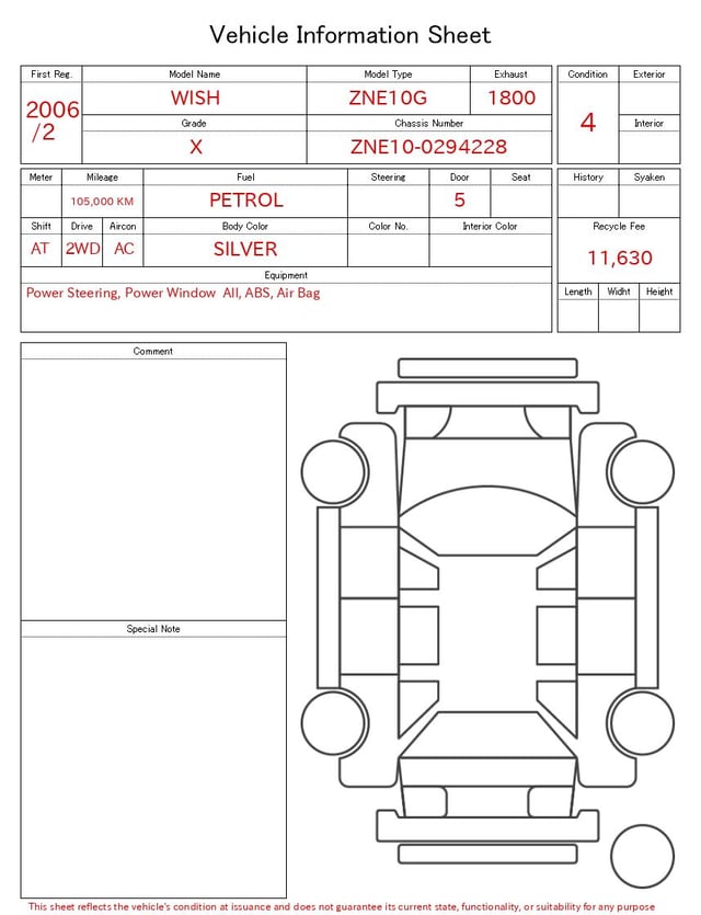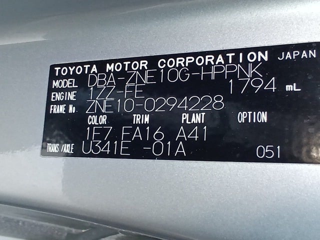| CHASSIS NO. | ZNE10-0294228 |