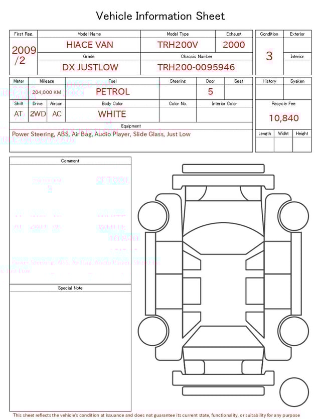 | CHASSIS NO. | TRH200-0095946 |