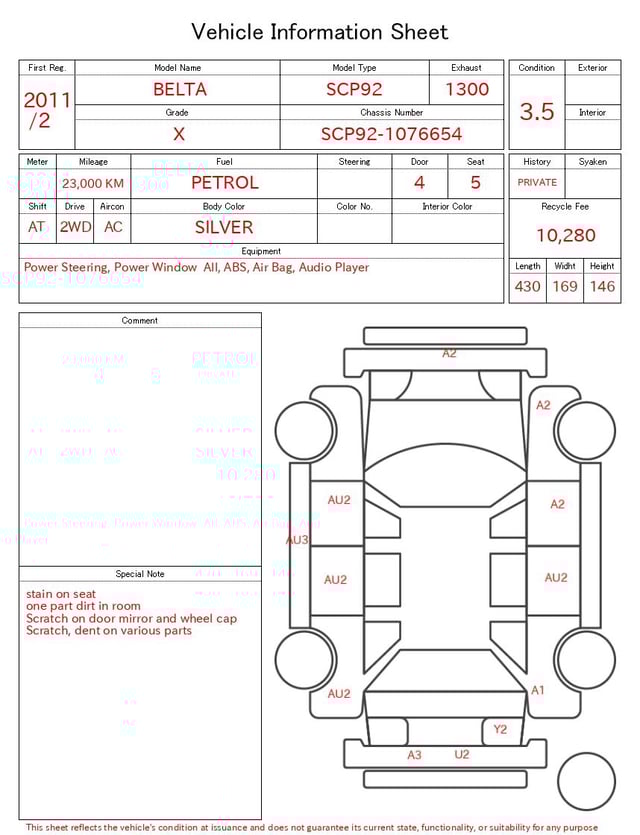 | CHASSIS NO. | SCP92-1076654 |