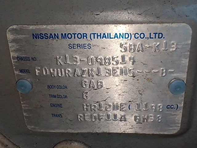 | CHASSIS NO. | K13-098514 |