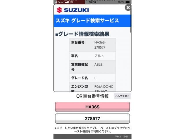 | CHASSIS NO. | HA36S-278577 |